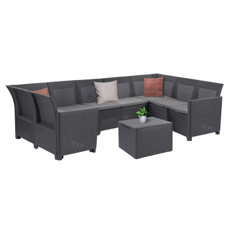 1 kép CURVER Claire VII 8 személyes sarokgarnitúra párnatartós asztallal grafit
