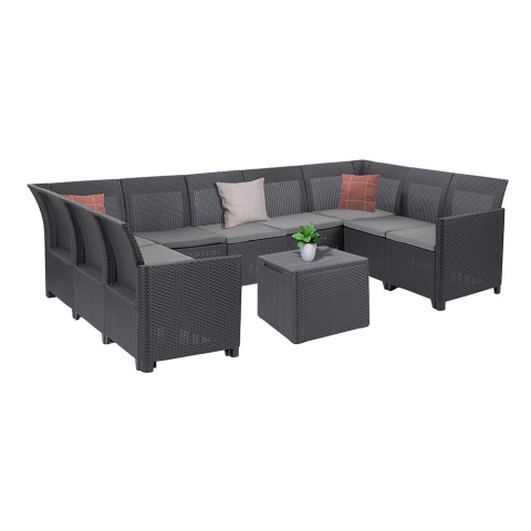 1 kép CURVER Claire VII 9 személyes sarokgarnitúra párnatartós asztallal