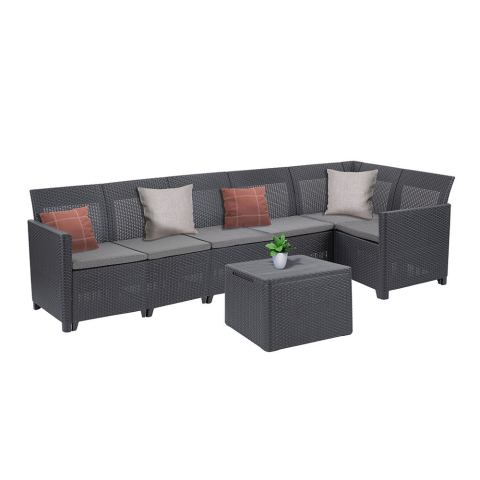 Teljes CURVER Claire VIII 6 személyes sarokgarnitúra párnatartós asztallal termékleírás
