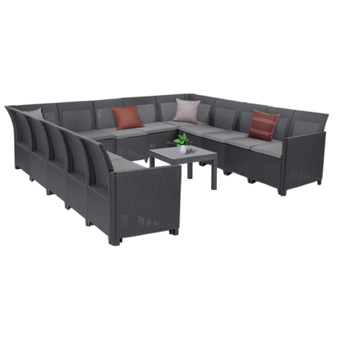 Claire XVII 13 személyes sarokgarnitúra orlando asztallalTeremtsd meg a kertedben a nyári esték legkényelmesebb találkozóhelyét!A Claire XVII 13 személyes sarokgarnitúra egy strapabíró, modulárisan bővíthető, esztétikus és maximálisan kényelmes kültér