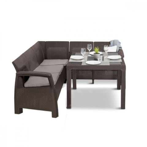 Teljes CURVER Corfu relax sarokgarnitúra rosario asztallal barna termékleírás