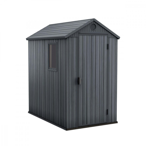 TermékjellemzőkA Darwin 4x6 grafit műanyag kerti ház univerzális és átfogó megoldás a kert számára. A termék 205 cm magas, 126 cm széles és 185 cm mély. A ház belső tere 2,5 m2 hasznos terület, ahol sikeresen tárolhat kerti szerszámokat, fűnyírót, ját