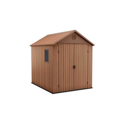 Darwin 6x8 műanyag kerti ház A Darwin 6x8 műanyag kerti ház ideális választás mindazok számára, akik kompakt, mégis tágas tárolási megoldást keresnek kertjükben. A ház innovatív kialakítása nem csak praktikus, hanem esztétikailag is vonzó, barna színű
