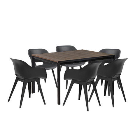 Flora 6+1 kerti bútor garnitúra szett dió-grafit Flora 6+1 kerti bútor garnitúra szett dió-grafit – Időtálló és stílusos kültéri bútorTermékadatok és tulajdonságok:Asztal mérete: 159 × 95 × 75 cmSzék mérete: Magasság: 81 cm, Szélesség: 56 cm, Mélység: