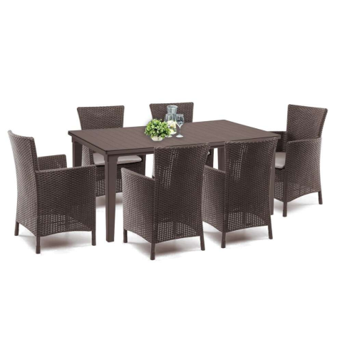 Futurowa 6+1 kerti bútor szett: Elegáns és időjárásálló kültéri bútor barna színben 🤎 Élvezze a nyári estéket ezzel a stílusos és praktikus Futurowa kerti bútor szettel! A Curver által gyártott, kiváló minőségű műanyagból készült garnitúra időjárásá...