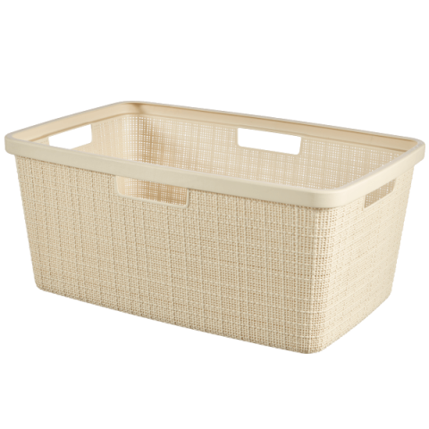 CURVER "JUTE" RUHÁSKOSÁR 46 L A 46 literes, stílusos ruháskosár tökéletes választás a kényelmet becsülő, valódi esztéták számára. A ruháskosár ruhák és egyéb textíliák tárolására és cipelésére szolgál. Ideális a fürdőszobába és a mosodába. A kosáron lévő nyílások megfelelő szellőzést biztosítanak. A kényelmes és ergonomikus fülek és az egymásra rakás lehetősége további funkcionalitást biztosít. A JUTE termékcsaládot a divatos otthonos ha