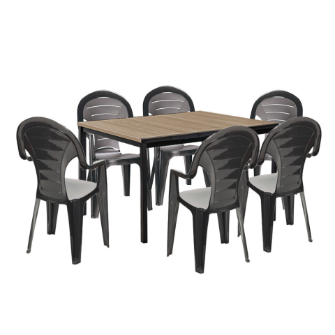 Lagos 6+1 kerti bútor garnitúra szett kőris-grafit Lagos 6+1 kerti bútor garnitúra szett – kőris-grafit-Elegáns és stílusos megjelenésSzett tartalma:1 db Porto 160 műanyag kerti asztal (kőris színben)6 db Bonaire műanyag kerti szék (grafit színben)Aszt