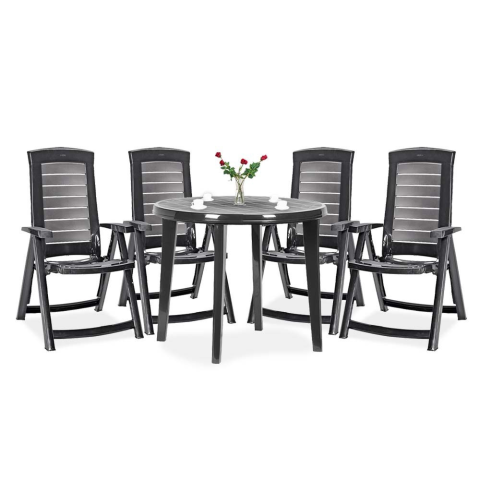 TermékjellemzőkAz egyszerű és elegáns formájú Lisaro kerti bútor garnitúra ideálisan betölt minden házkörüli teret. Az asztalnál kényelmesen elfér 4 személy. Könnyű összeszerelni; ellenáll a kedvezőtlen időjárási feltételeknek. Tisztítás mosószeres ví