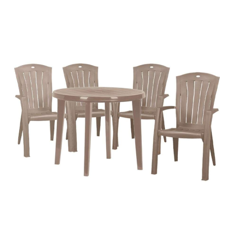 Lisorini Cappuccino Műanyag Kerti Bútor Szett (4 szék + 1 asztal) - Tökéletes pihenés a szabadban ☀️ A Lisorini kerti bútor szett ideális választás a kertbe, teraszra vagy erkélyre. A széles kartámasszal ellátott kényelmes székek és a hozzá tartozó as...