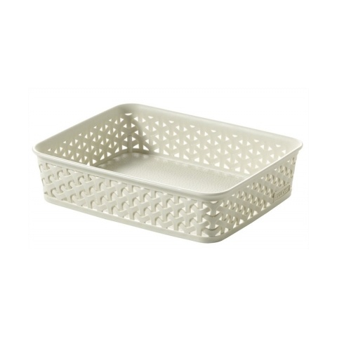 Rattan hatású kosár, A4, törtfehér, CURVER "My Style" - CSCMS1 - Tárolókosarak - Tárolókosár bézs színben. Méret:358x262x60 mm