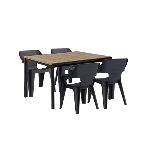 Ravello 4+1 kerti bútor garnitúra szett kőris-fekete Keter Ravello 4+1 kerti bútor garnitúra szett kőris-fekete-Elegáns és stílusos megjelenésSzett tartalma:1 db Porto 160 műanyag kerti asztal (kőris színű)4 db Bilbao Lowback kartámaszos műanyag kerti