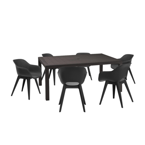 TermékleírásA Romy 6+1 kerti bútor szett jellemzőiEz a grafit színű, kényelmes és elegáns bútor szett hat darab 57X56X81 cm-es széket, és egy 160X95X75 cm-es asztalt foglal magában. Ez a 6 személyes kerti bútor szett rendkívül előnyös lehet, ha szeret