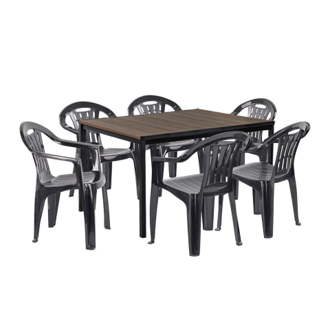 Rowen 6+1 kerti bútor garnitúra szett dió-grafit Keter Rowen 6+1 kerti bútor garnitúra szett dió-grafit-Elegáns, stílusos megjelenésSzett tartalma: 1 db Porto 160 kerti asztal + 6 db Mallorca műanyag kerti székAsztal mérete: 159 × 95 × 75 cmSzék mérete
