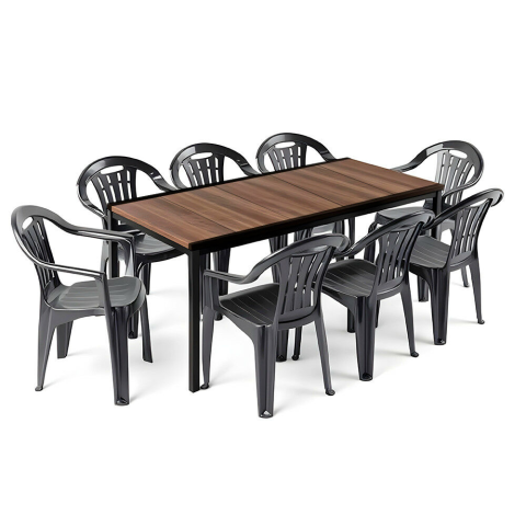 CURVER Rowen 8+1 Kerti Étkezőgarnitúra - Dió/Grafit, Műanyag kerti bútor termékleírás