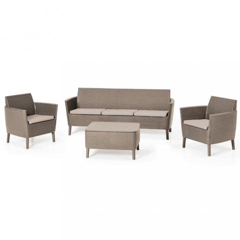 1 kép CURVER Salemo set háromülős kanapéval, 2 fotellel, kis asztallal cappuccino/homok