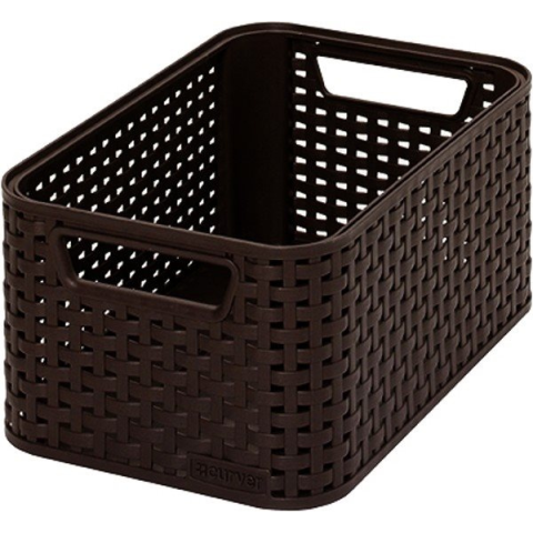 Tároló doboz - raktározó, szellőzőnyílásokkal, háztartási cikkek tárolására, anyaga műanyag, fogantyú, méretei 13 × 19 × 29 cm (ma × szé × mé), barna kivitel A sötétbarna, S méretű Curver tároló doboz a modern STYLE termékcsalád tagja, jól illeszkedik az összes háztartásba. Az elegáns megjelenése (rattan utánzat) miatt hasznát veszed a fürdőszobában,