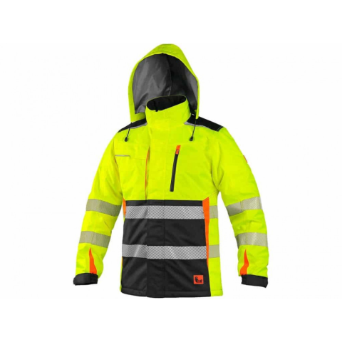 Víz és szélálló, téli bélelt láthatósági télikabát. Modern és divatos megjelenésének köszönhetően kitűnik a többi kabát közül. Szegmentált fényvisszaverő csíkjai még nagyobb kényelmet és tartósságot biztosítanak viselője számára.Strapabíró és meleg kabát.