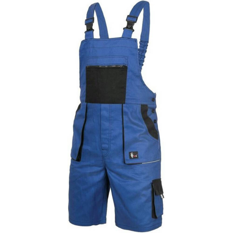 Kertész nadrág Denis Kantáros férfi munkás rövidnadrág a meleg nyári napokra. Derékrészen gombos és gumírozott. Vállpántjai is gumírozottak, kényelmes beállítást tesznek lehetővé. A mellrészén cippzáros mellzsebvan, található még rajta 2 db svédzseb il