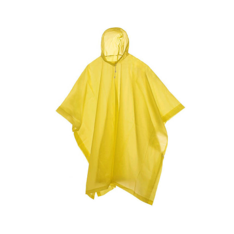 Esőponcsó, kapucnival Nyaknál összehúzható Oldalt patentos 100% lágy tapintású, rugalmas, jó vízálló tulajdonságú EVA anyagból készül Univerzalis méret: 101x127 cm Kerékpáron is használható