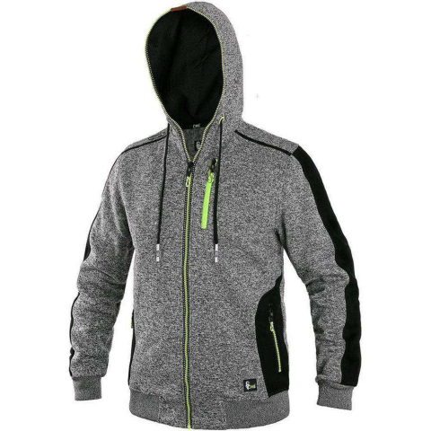 Férfi pulóver kapucnis Kötött anyagból készült cipzáros pulóver férfi Gumírozott derék és mandzsetta 3 cipzáras zseb Fix kapucni, kontrasztos sárga színű kiegészítők, Fényvisszaverő kiegészítők Cipzáras mellzseb, 2 alsó cipzáras zseb. A kapucnis felső