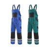 Pamutgazdag anyagból készült, fényvisszaverő csíkokkal ellátott kantáros munkásnadrág rugalmas vállpántokkal. Pamutgazdag anyagból készült fényvisszaverős kantáros nadrágA nadrág vállpántjai hátul rugalmasak, gumírozottakDereka gumírozott, gombos bővít