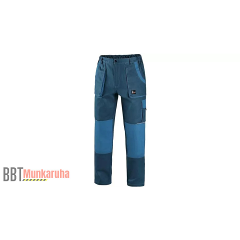 Megerősített térd Gumírozott derék Övtartó Első- és oldalzsebek Reflex kiegészítők 100% pamut, 260 g/m2 Elérhető rövidített (170-176 cm) változatban kék/fekete színben EN ISO 13688