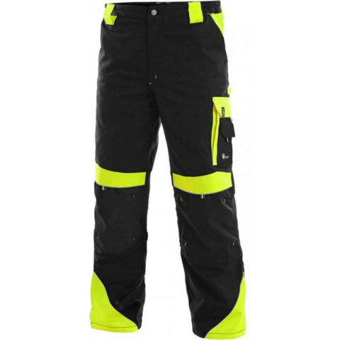 Figyelemfelkeltő színösszeállítású strapabíró munkásnadrág fényvisszaverő szegélyekkel.Praktikus viselet, köszönheteőn a jól pakolható, nagy méretű zsebeinek.Térdpárna behelyezésére alkalmas térdzseb található rajta. Feltűnő színösszeállítású, rugalmas