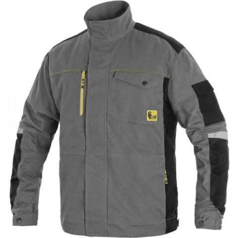 Modern, divatos megjelenésű, rugalmas anyagú munkáskabát. Praktikus viselet köszönhetően a mozgást követő anyagnak és a jól pakolható nagy méretű zsebeinek.Tartós anyag, amely 98% pamutból készült. Hátán szellőzőnyílás található. Rugalmas, pamutgazdag