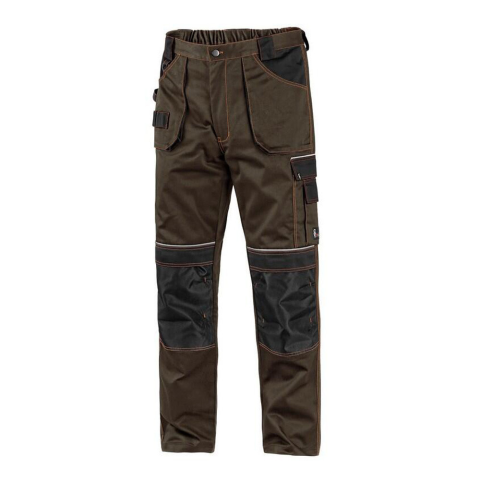 Elegáns és kényelmes munkásnadrág Az OTAKAR munkáskabáttal öltönyként hordható. Térderősítéssel készül A térderősítésbe alulról térdvédő párnát lehet felhelyezni Fényvisszaverő csíkkal díszített A derékrész hátsó része széles gumírozásu, kényelmesen il