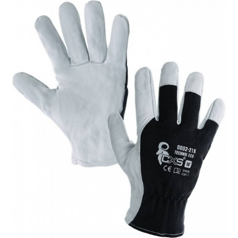 Technik Eco kecskebőrtenyerű védőkesztyű Tenyér: szín kecskebőr Kézhát: pamut Gumírozott mandzsetta Kesztyű hossza: 22,5-28,5 cm Cat. 2 EN 420, EN 388 (2112X)