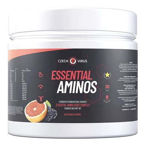 Aminosav - EAA, ízesítés: narancs, tömege: 360 g Czech Virus Essential Aminos aminosavvérnarancs és erdei gyümölcsök, 360 gA Czech Virus Essential Aminos az erőnléti- és állóképességi sportolók számára alkalmas aminosav instant formában. Az aminosav