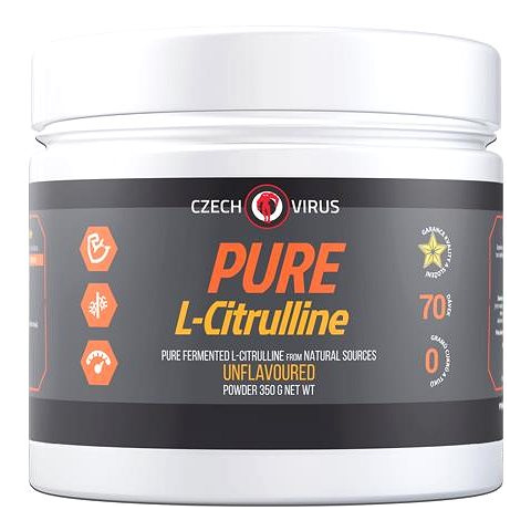 Aminosav - citrullin, natural, tömege: 350 g Czech Virus Pure L-Citrulline350 gA Pure L-Citrulline termék 100%-os tisztaságú L-citrullint kínál, egy aminosavat, amelyet elsősorban a sportolók használnak NO2-termelésre. A termék citrullint tartal
