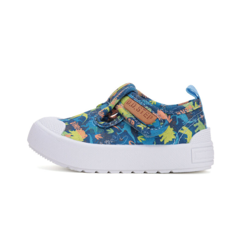 D Step vászon gyerekcipő kék-mintás színben. Benti cipőnek megfelelő választás.Könnyen tisztítható, ideális játszótérre, váltócipőnek, óvodai tornacipőnek. Mosógépben max. 30 C°-on mosható! A mosáshoz a talpbetét kivétele valamint mosózsák használata jav
