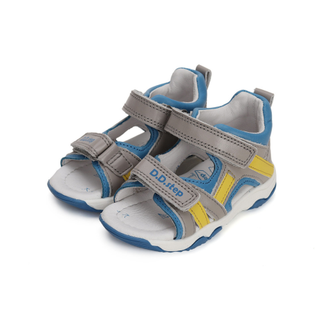 Nyitott orrú és zárt kérgű szandál | A zárt kérgű (sarokrészen zárt) szandálok stabil tartást biztosítanak a boka számára Elsősorban normál/széles lábfejhez ajánlott Márka D.D.Step Nem Kisfiú Szín Szürke Felsőrész anyaga Bőr Bélés anyaga Bőr Talpbetét