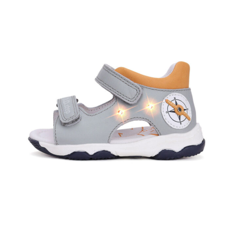 Két tépőzárral záródó szandál bőr felsőrésszel, és bőr talpbéléssel. Járótalpa: egyéb Tökéletes nyári lábbeli, utcai viseletre vagy óvodai váltószandinak. Lépéskor világít. Nem vízálló. Tisztítás: a szennyeződéseket a felsőrészen puha szőrű kefével, vagy