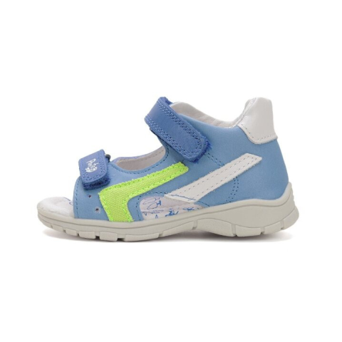 Nyitott orrú és zárt kérgű szandál kisfiú szupinált szandál. A zárt kérgű (sarokrészen zárt) szandálok stabil tartást biztosítanak a boka számára Elsősorban normál/széles lábfejhez ajánlott. Kiváló óvodába váltó szandinak, hétköznapi használatra.