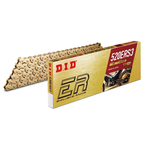 A Motocross Top Choice egyike az AMA versenycsapatok legjobb választásainak. Az ERS3 az egyik kedvenc motokrossz láncunk, amely erős és könnyű. A legújabb technológiát használva a 520ERS3 az egyik legerősebb, ugyanakkor legkönnyebb lánc a piacon. A DID SDH kezelt tűk kiváló kopásállóságot és extrém ütésállóságot biztosítanak. Az 520ERS3 az egyik legjobb teljesítményű láncunk, alacsony húzóerővel és magas húzószilárdsággal.
