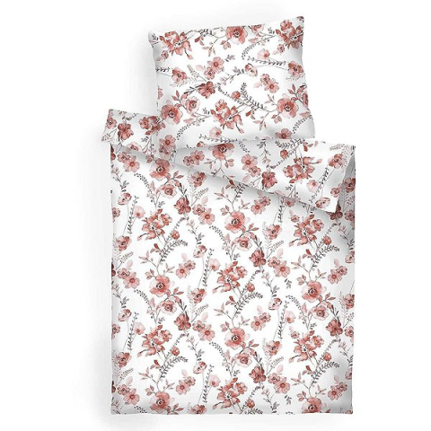1 kép Dadka 140 × 200 cm, 70 × 90 cm ágynemű, pamut - terrakotta virágok, fehér