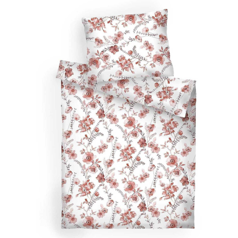 1 kép Dadka 140 × 200 cm, 70 × 90 cm ágynemű, pamut - terrakotta virágok, fehér (8596132058436)