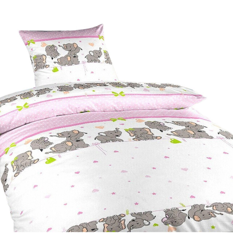 1 kép Dadka ágynemű, krepp, elefántok, rózsaszín 140 × 200, 70 × 90 cm (8596132017914)