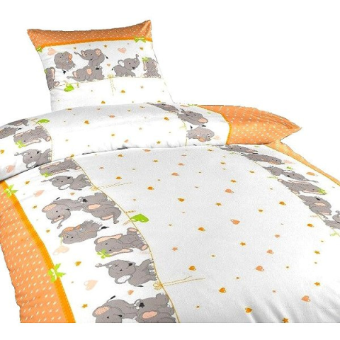 1 kép Dadka ágynemű, pamut Elefántok, narancssárga, 140 × 200, 70 × 90 cm