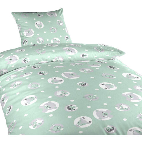 1 kép Dadka ágynemű, pamut, kiságyba, állatok, menta 90 × 130, 45 × 60 cm (8595085951115)