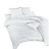 Ágynemű - paplan és párna szett, anyaga krepp, kétoldalas, cipzáras, mosás mosógépben 60 °C hőfokon, párnahuzat méretei 70 × 90 cm (szé × h), paplanhuzat méretei 200 × 140 cm (h × szé), fehér és kék kivitel A minőségi Dadka ágyneműhuzat része egy 140 × 200 cm (Sz×H) méretű paplanhuzat, valamint egy 70 × 90 cm (Sz×H) méretű párnahuzat. Mindkét oldala használható a könnyű és változatos ágyazáshoz. Cipzárra