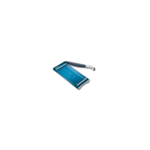 Dahle 502 karos, A/4-es hobbi papírvágógép, méretskálás fém vágóasztallal, papírlapok darabolására, méretre vágására. A vágandó anyag rögzítése az átlátszó sín kézi leszorításával, a vágás a kar lenyomásával történik. A lemezkés ergonomikus markolata kény