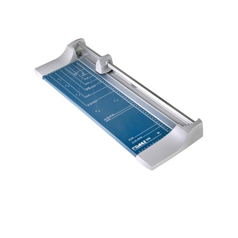 Dahle 508 körkéses, hobbi papírvágó íves papírok, tekercses papírok méretre vágásához. A cserélhető görgős vágófej mindkét irányban mozgatható. A fejbe épített gumigörgő mindig leszorítja a papírt a vágás helyén. A vágóasztal méretbeosztása segít a pontos