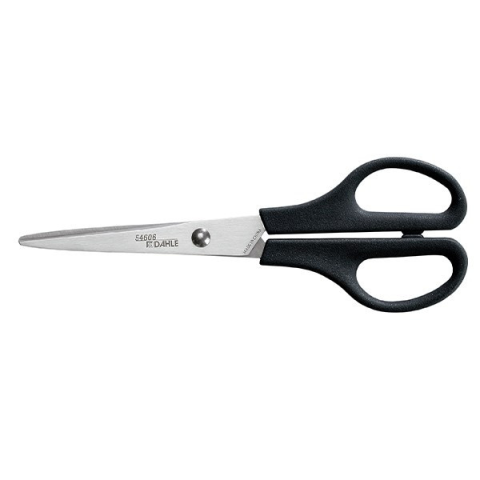 Olló irodai DAHLE 54606 15 cm fekete Háztartási olló speciálisan edzett acélból Méret: 15 cm Jobbkezes olló Háztartási olló Praktikus olló irodai vagy otthoni használatra Rozsdamentes, speciálisan edzett acél könnyíti a pontos vágást. Csiszolt pengék,