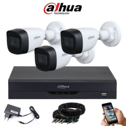 Dahua 5 megapixeles 3 csőkamerás rendszer 30 méter látótávolság (3DAHUA-5MP-30)