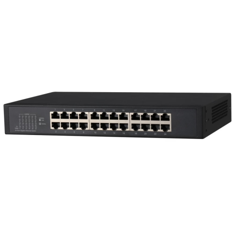 24 portos Gigabites Switch (Unmanaged) - 2. réteg nélküli felügyelet nélküli kapcsoló - Minden Ethernet port gigabites - Villámvédelem - Plug and play - Fém burkolat - Jó hőelvezetés Műszaki adat...