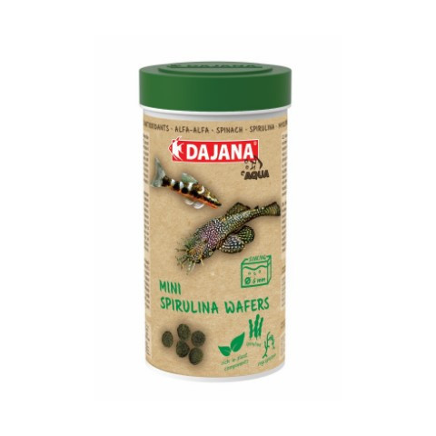A Dajana Mini Spirulina Wafers süllyedő haleledel magas spirulinatartalommal, amely támogatja az algázó, növényevő és fenéklakó halak egészségét. Apró méretű waferei ideálisak kisebb halak és garnélák számára is. Lassú oldódásának köszönhetően nem szennye