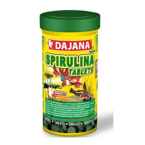 A DAJANA-SPIRULINA TABLETS süllyedő és üvegfalra tapasztható tablettás haleledel, magas spirulinatartalommal. Támogatja az algázó és növényevő halak emésztését, immunrendszerét és élénk színezetét. Lassú oldódásának köszönhetően nem szennyezi a vizet.